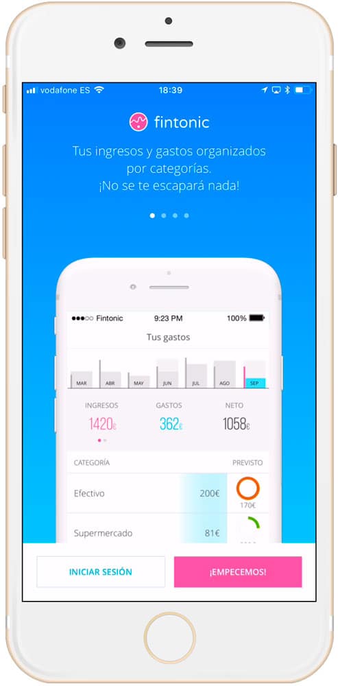 Fintonic permite registrar los movimientos de las diferentes cuentas y tarjetas desglosados por temáticas, de manera que conseguimos controlar en que nos gastamos el dinero, además de realizar un balance del saldo disponible, que se completa con gráficos para que sea mucho más sencillo, con un golpe de vista, saber en qué nos hemos gastado el dinero.