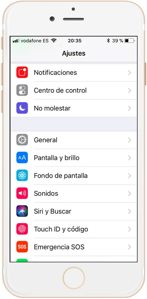 - Accedemos a los ajustes de nuestro iPhone o iPad.
