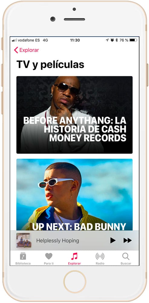 - Además existe una sección extra llamada «TV y Películas» en la que podremos encontrar las producciones propias de Apple como Up Next, Planet of the Apps, CarPool Karaoke y TODOS los videos exclusivos de diferentes artistas que ha ido produciendo.