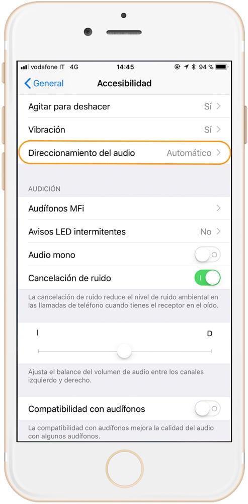 - Buscamos la parte de «Direccionamiento del audio», que de manera predeterminada esta establecido en automático para alternar entre el iPhone o cualquier sistema Bluetooth conectado.