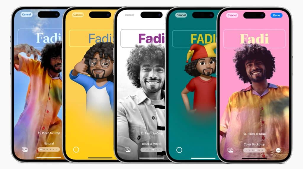 - Contact Posters: permiten a los usuarios expresarse de nuevas formas. Los usuarios pueden personalizar su apariencia, cambiar por completo el aspecto de las llamadas entrantes, elegir bonitos retoques para sus fotos y Memoji, así como añadir llamativos tipos de letra y colores de la fuente. Los Contact Posters también estarán disponibles en apps de llamadas de terceros.