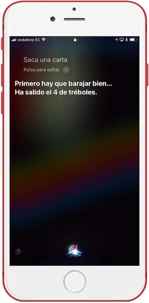 Pero no solo podemos usar a Siri para estas DOS cosas, sino que además podremos, al más puro estilo truco de magia, decirle a Siri «saca una carta», y Siri nos dirá de que carta se trata (os avisamos que se trata de una baraja francesa).
