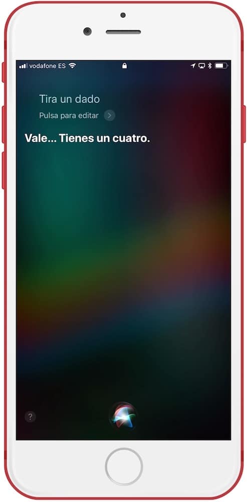 - Siri lanza UN dado > Lanzara un dado dándonos el resultado (del 1 al 6)